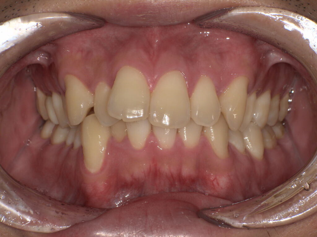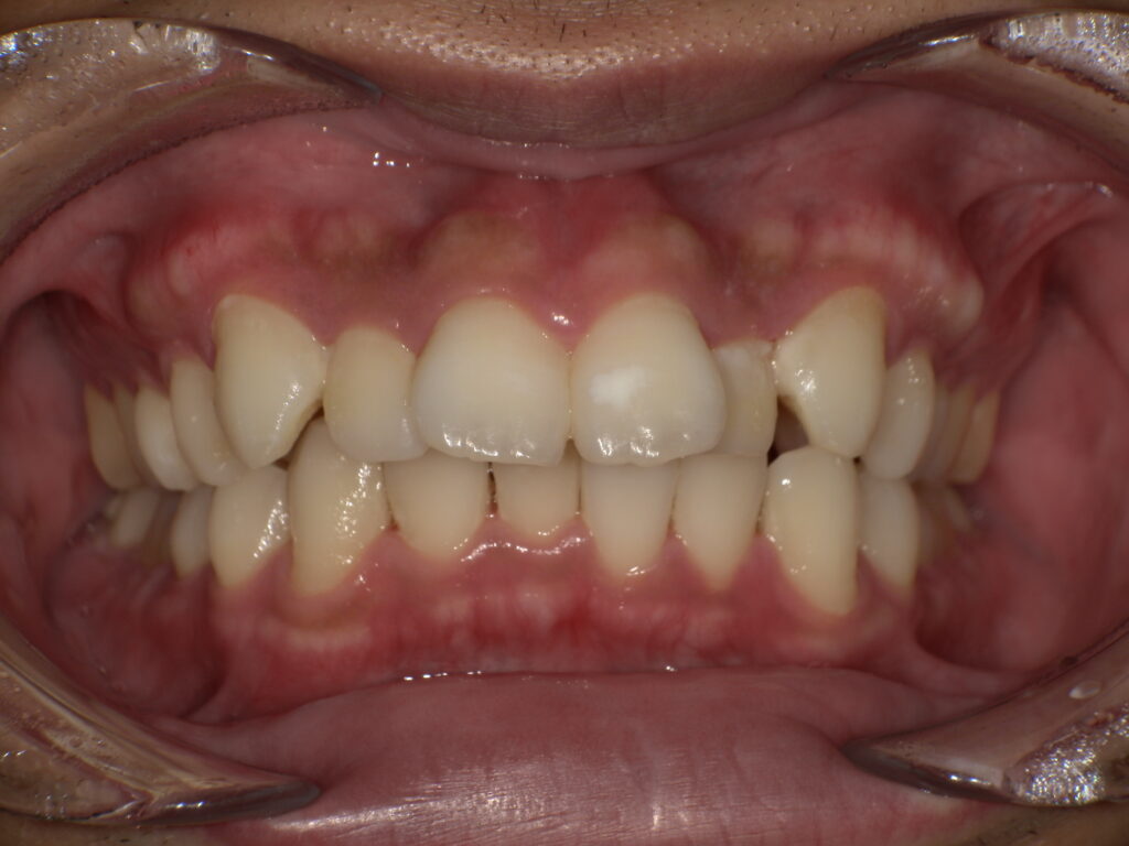 前歯のガタガタ・デコボコ(叢生)を改善した症例を紹介します。前歯の重なりやねじれ、歯並びの凸凹を整えて見た目をきれいにするだけでなく、噛み合わせや清掃性にも配慮した矯正治療例を掲載しています。