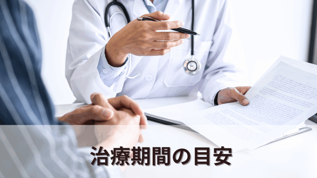 治療期間は症例によって大きく異なりますが、一般的な目安は以下の通りです。