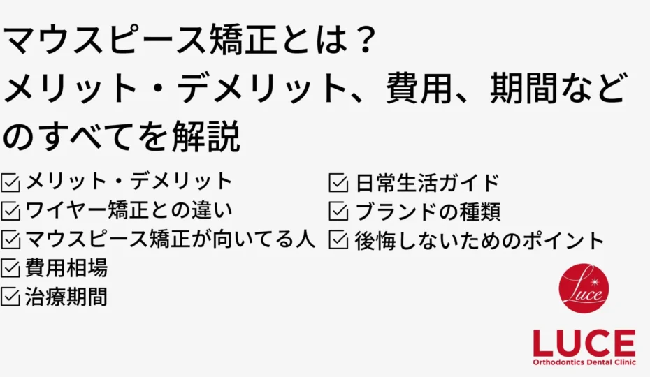 マウスピース矯正2025年11月14日マウスピース矯正とは?メリット・デメリット、費用、期間などのすべてを解説